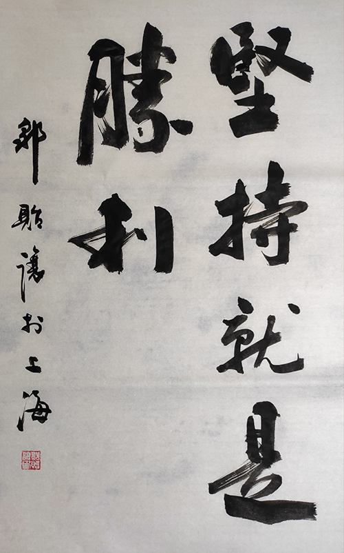 上海书法家邹贻让抗疫书法作品《坚持就是胜利》