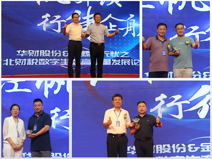 颁奖嘉宾:北京华财会计股份有限公司董事长王久立,金蝶账无忧CEO祝锦华,大连数宇宙产业园有限公司总经理徐林。