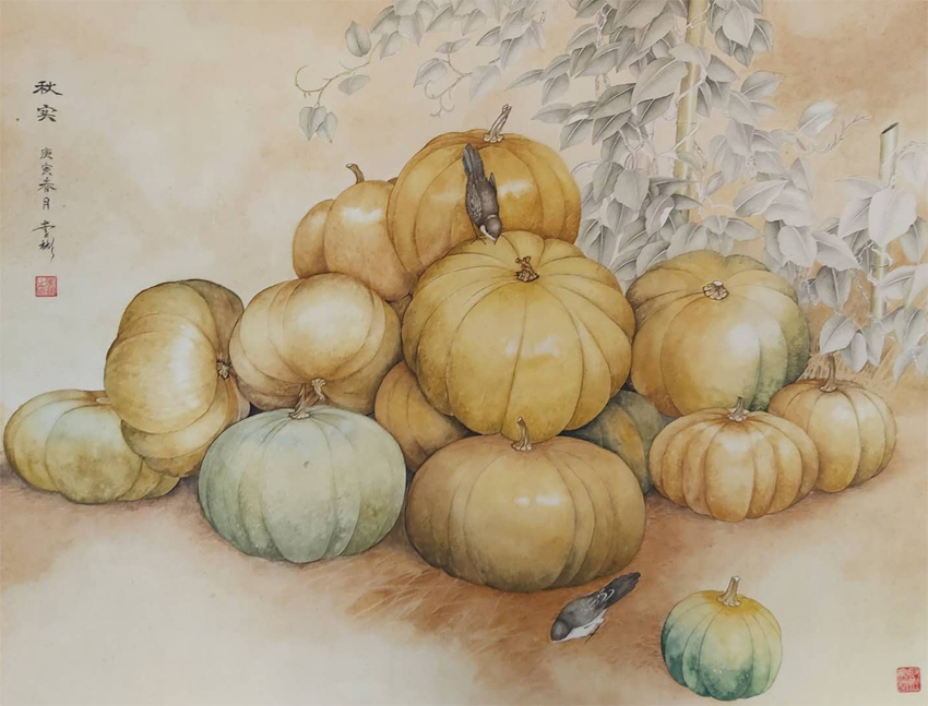工笔虎画家李彬作品《秋实》