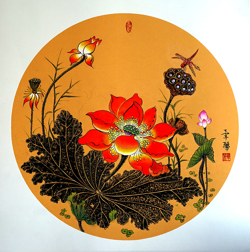 画家毕丽作品《映日荷花别样红》